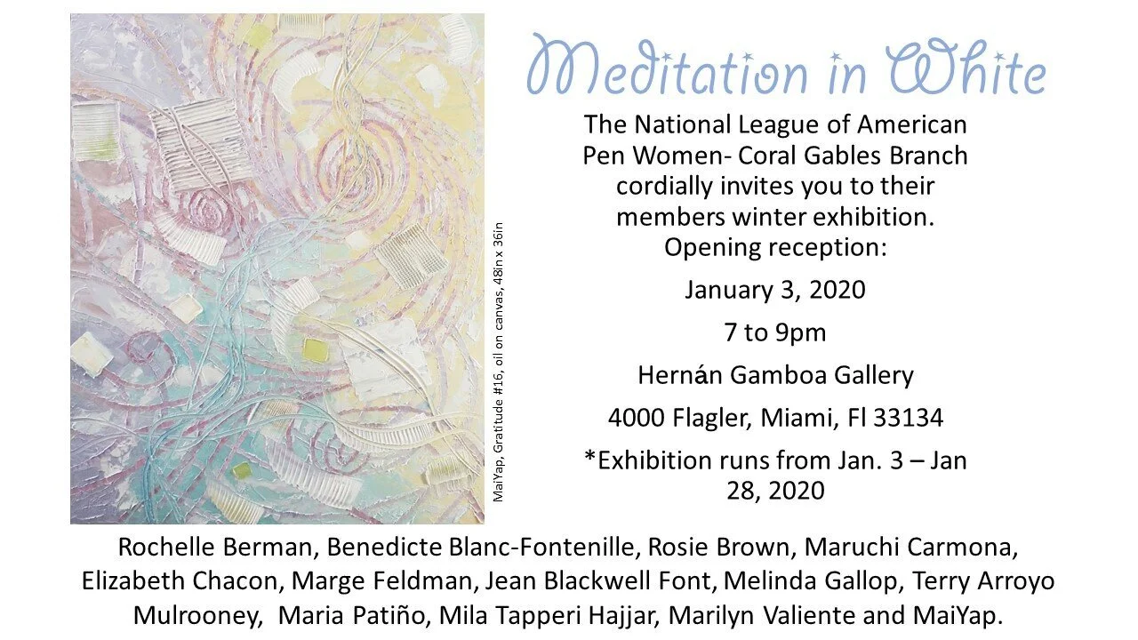 The National League of American Pen Women - Coral Gables Branch cordially invites you to their members’ winter exhibition.
