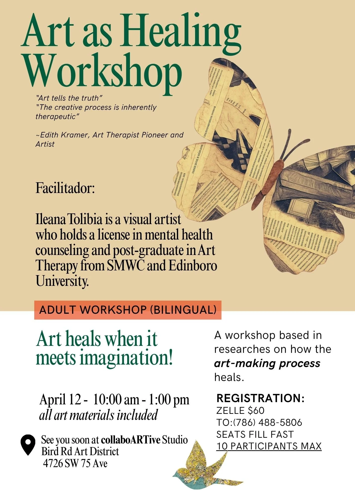 Un taller basado en lost estudios de como solo el proceso de crear arte nos acerca a la sanación. Inscríbete por $60, sillas se llenan