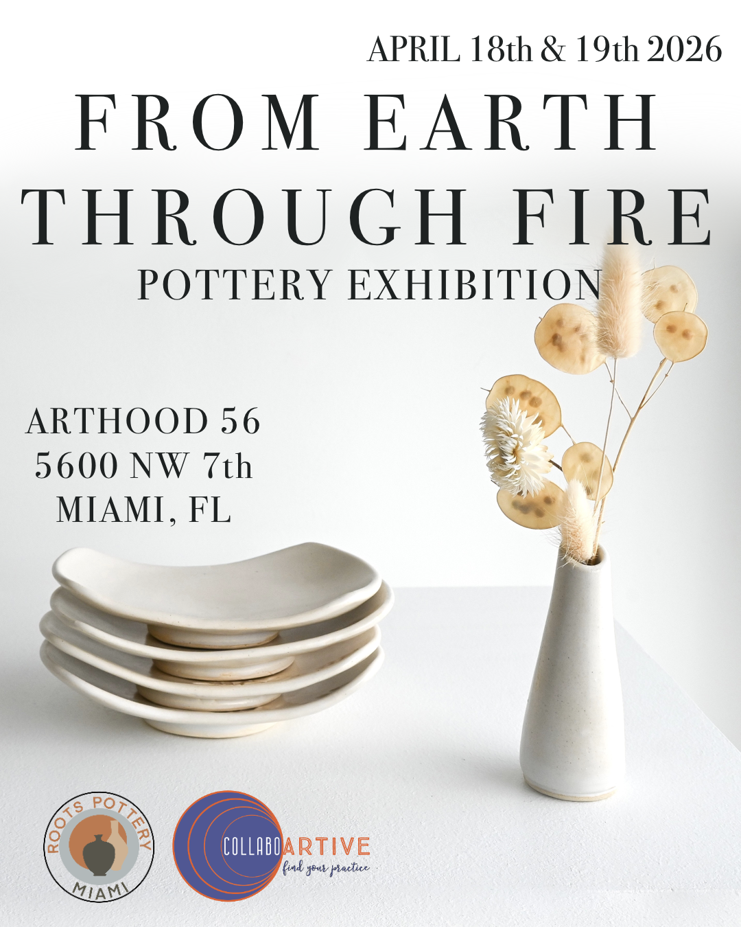 collaboARTive is partnering with Roots Miami to bring a spring ceramics exhibition to ArtHood 56, featuring South Florida-based ceramic artists and a range of functional and sculptural work by ceramists in and around Miami.