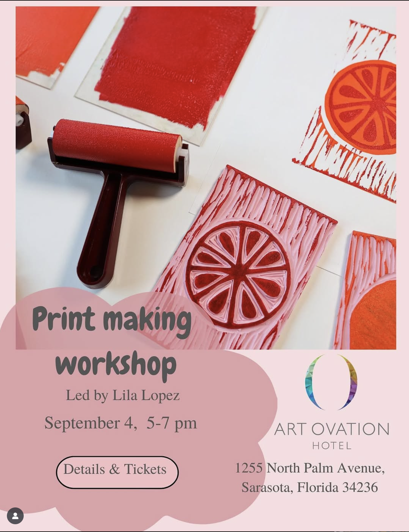 Join collaboaRTive resident artist Lila Lopez at Art Ovation Hotel, Autograph Collection on September 4, 2025 at 5:00 PM for a fun evening of creativity!